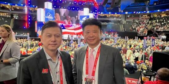 参加全美共和党大会代表的邓龙(右)和刘锡枢(左)